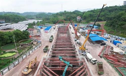 根據(jù)設計資料顯示,15號線二期中梁山隧道正線下穿5組既有線,其中安全風險最高為下穿渭井下行線,拱頂埋深距離既有線鋼軌頂僅8.61米,周邊環(huán)境復雜,施工風險極高。為保障中梁山隧道施工期間既有線安全運營,根據(jù)鐵路監(jiān)管部門要求,設計采用D16型施工便梁對下穿范圍內(nèi)線路進行加固。該加固施工于2023年12月完成樁基礎施工,2024年4月開始籌備架梁工作,至5月16日凌晨完成全部架設任務,安全恢復列車通行。